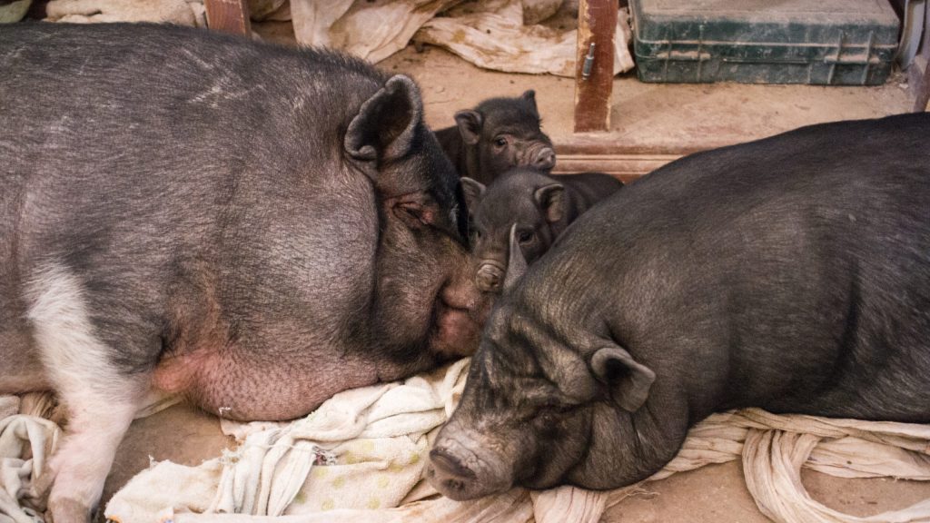 Isadora llegó a nosotros poco después de su nacimiento en junio de 2011. Algunos de nuestros amigos habían salvado a su padre de un mercado hace años siendo aún pequeño, mitad jabalí mitad cerdo. Al cabo de un tiempo, alguien les dio una hembra y sorpresa, sorpresa…una camada de cochinillos pronto apareció. Por tanto, acordamos acoger a la pequeña Isadora.