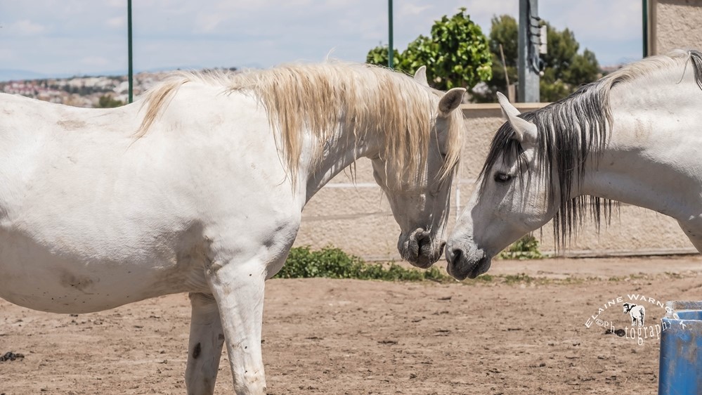 Once home, we nursed her back to full physical health as best we could – Bella has massive melanomas all over her backside as well as her mouth. Melanomas like this stay dormant and then erupt every now and then, growing again and then settling down again. We have several older grey horses like this here. It’s very common in Spain; our equine vet tells us it’s something to do with the genetics here. Horses like this obviously cannot be ridden as it would just aggravate things.