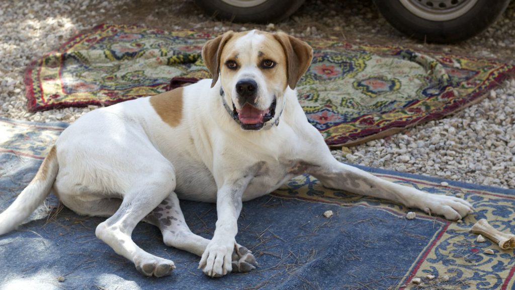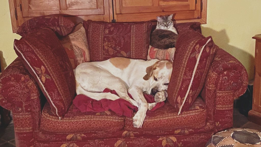 Harvey lives in our garden with our other canine residents, but has also learned how to open doors so regularly lets himself inside.