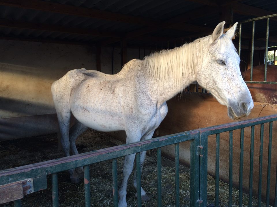 In November 2015 we were contacted by a resident concerned about this mare’s skeletal state, and we immediately encouraged the woman to report the matter to the police so we could act.