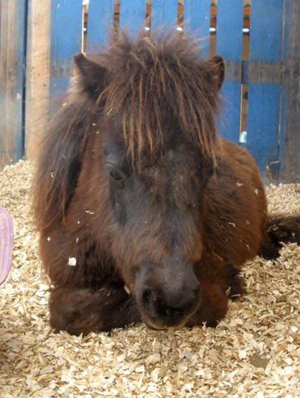 This gentle mare was about 15 years old when rescued and had almost certainly been kept permanently in foal, never able to regain weight or recover properly between each pregnancy.