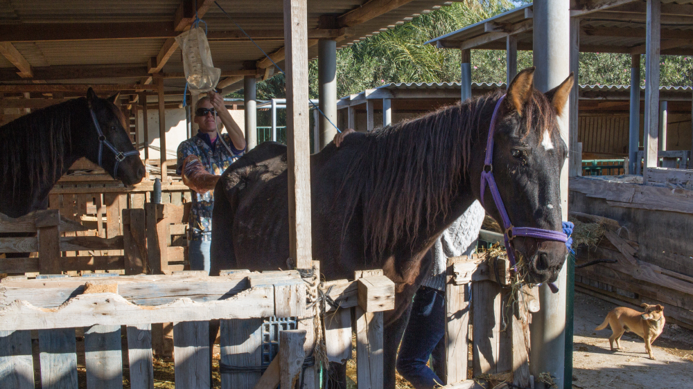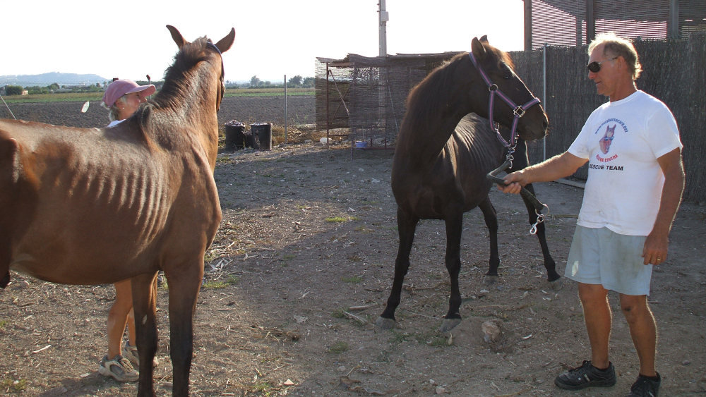 We found the minis, who we later named Napoleon and Nelson, in an absolutely horrendous state of starvation. What’s more, across a narrow pathway we unexpectedly found another two starving horses tied up – young Jacob and his mum Sophia, already pregnant with another foal.